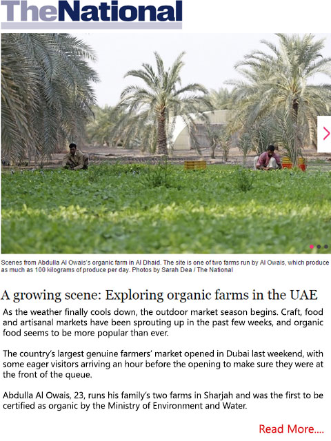 Modern Organic Farm is a local organic farm located in Sharjah which is organic certified by the UAE Ministry of Environment since 2005 as the first organic farm in the United Arab Emirates.